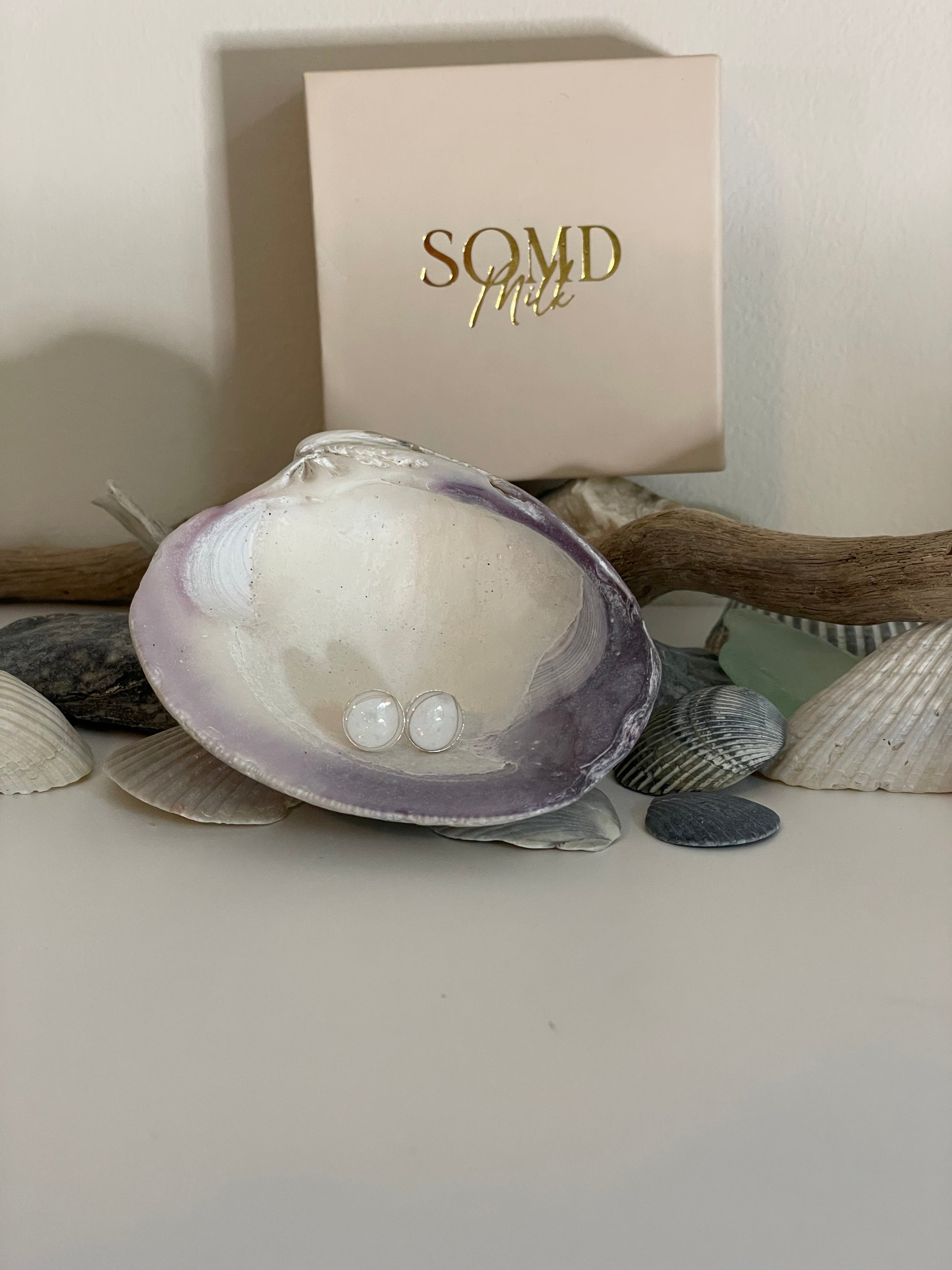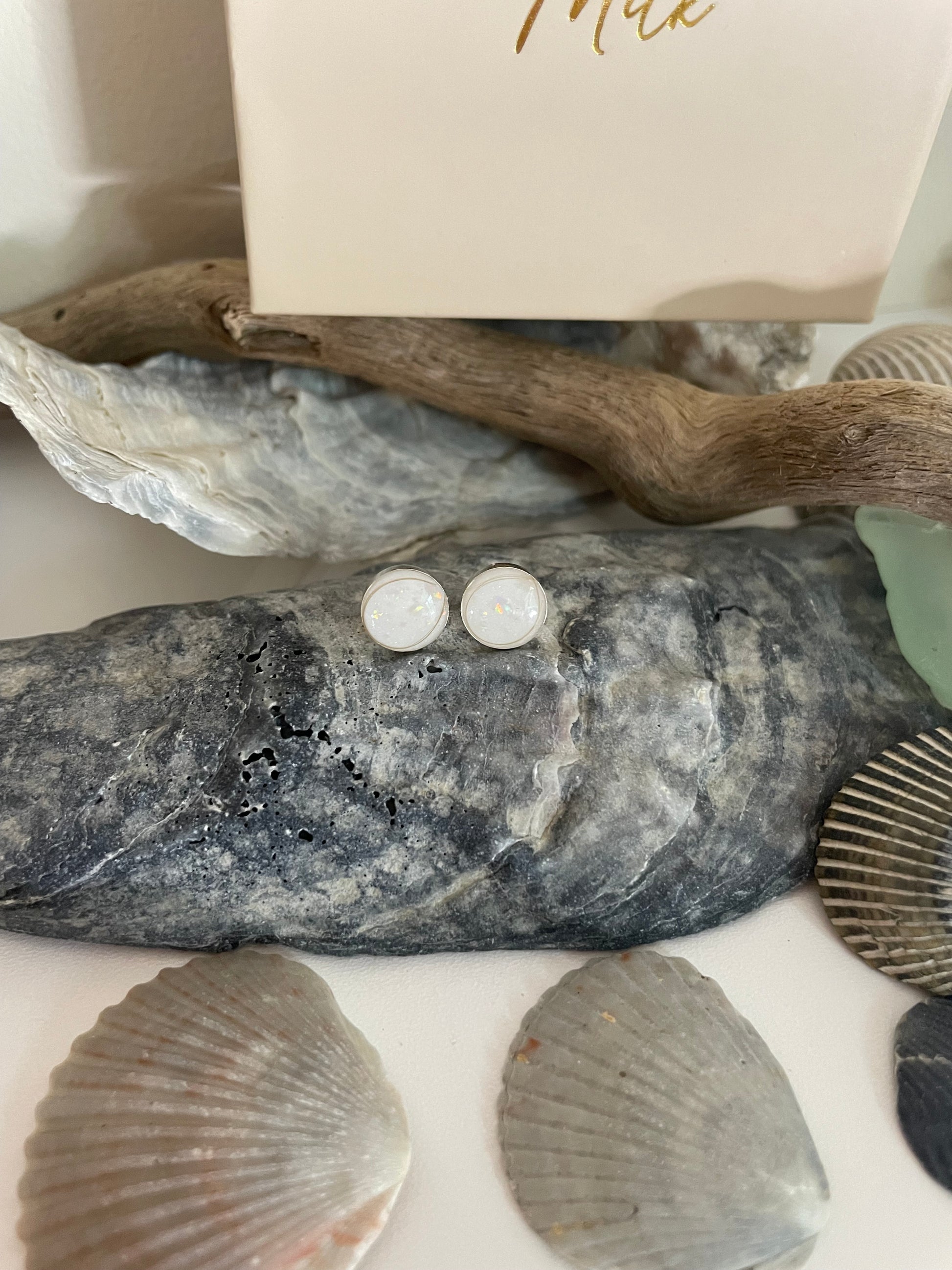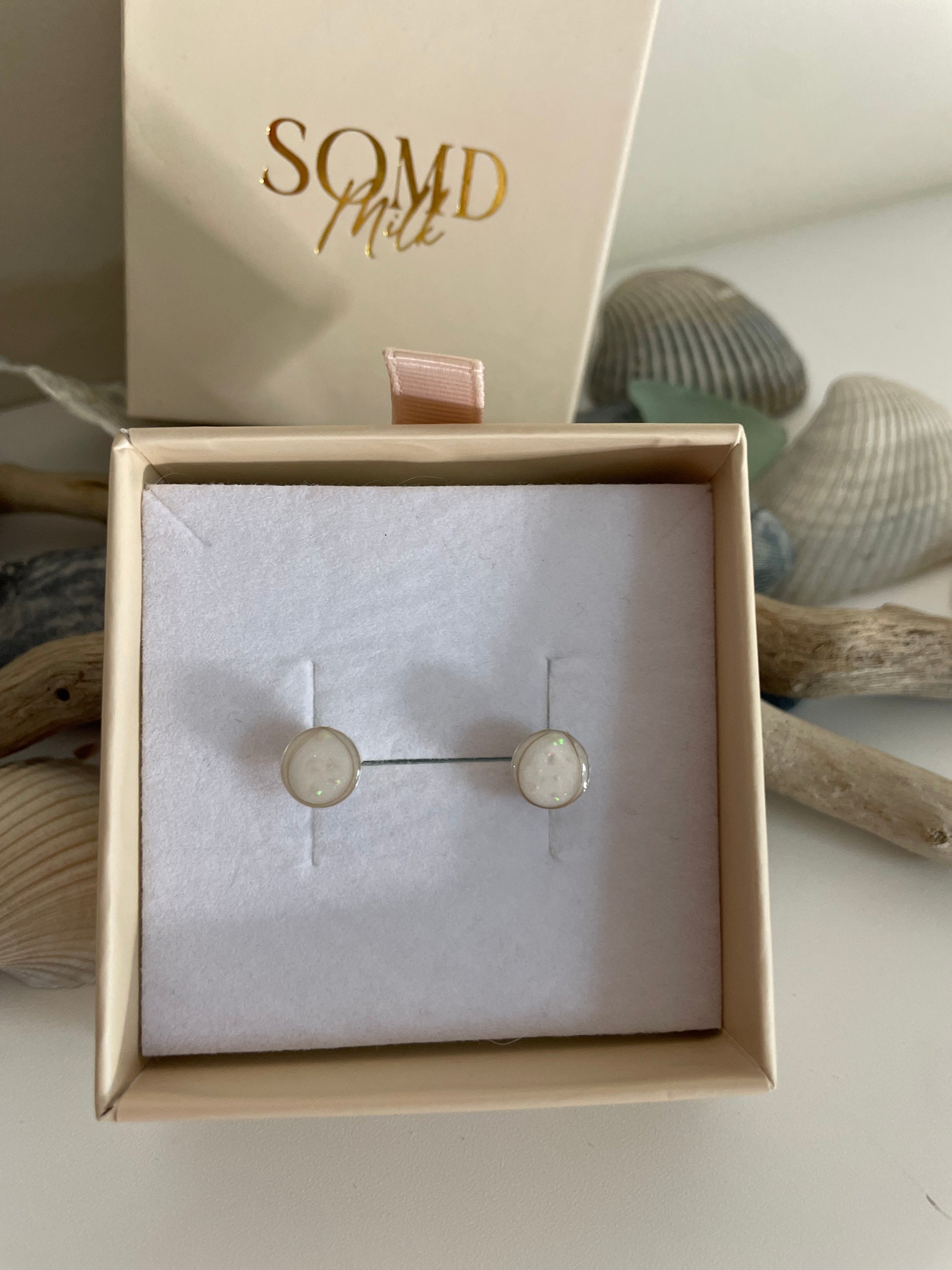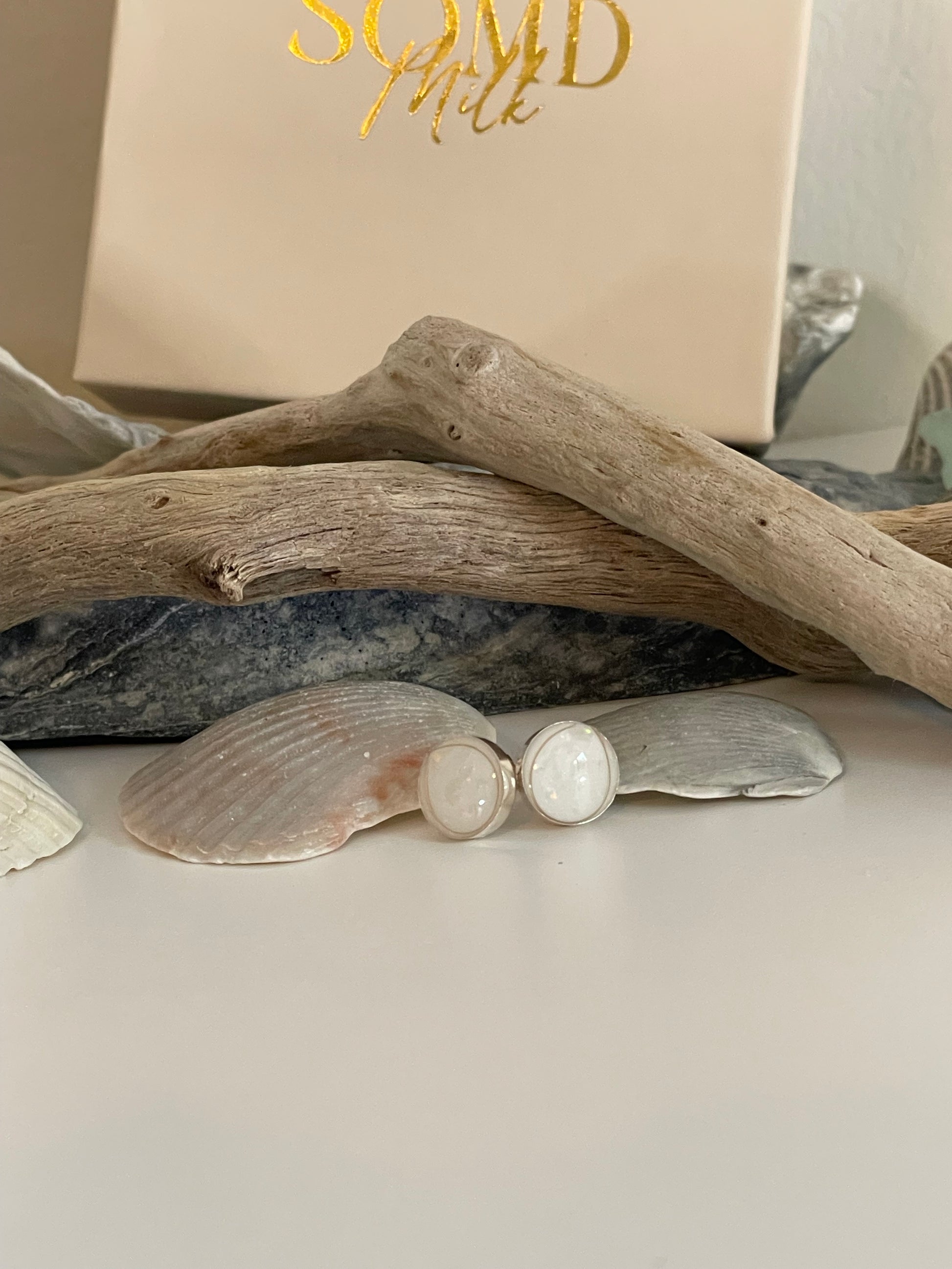 Lovely breastmilk earrings features an 8 mm circle shaped stone.